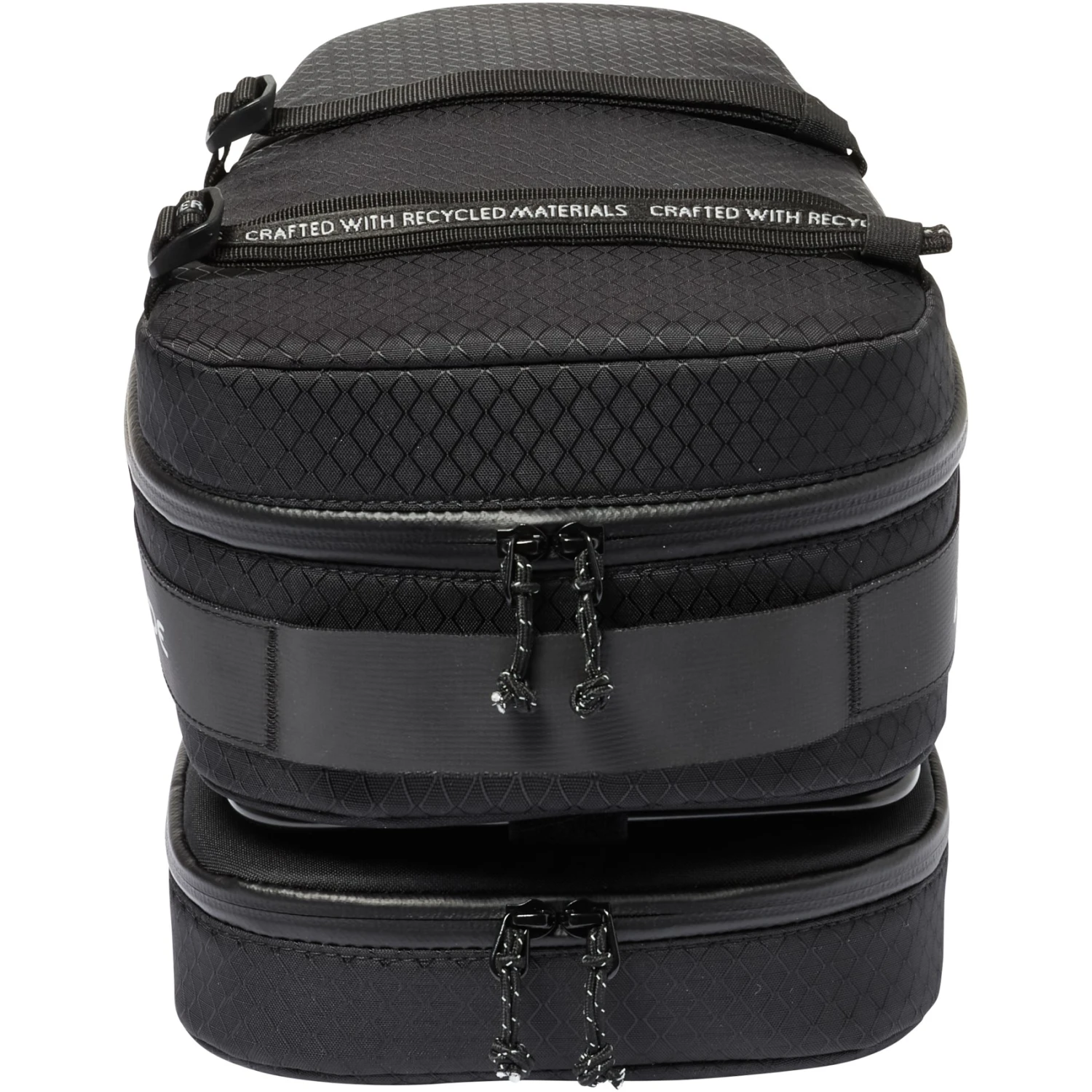 Rounding out the compact features are webbing straps on the lid that allow for stowing a rain jacket or even a yoga mat. Reflective elements and a rain cover are mandatory. From the use on carbon or other lightweight seatposts is discouraged or recommended to obtain the advice of the wheel manufacturer. The seatpost bag is made primarily from recycled materials and is equipped with Eco Finish PFC-free water repellent.
