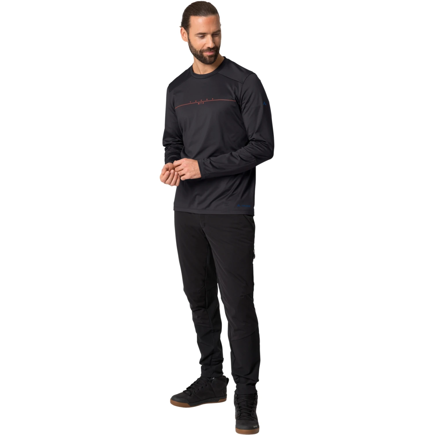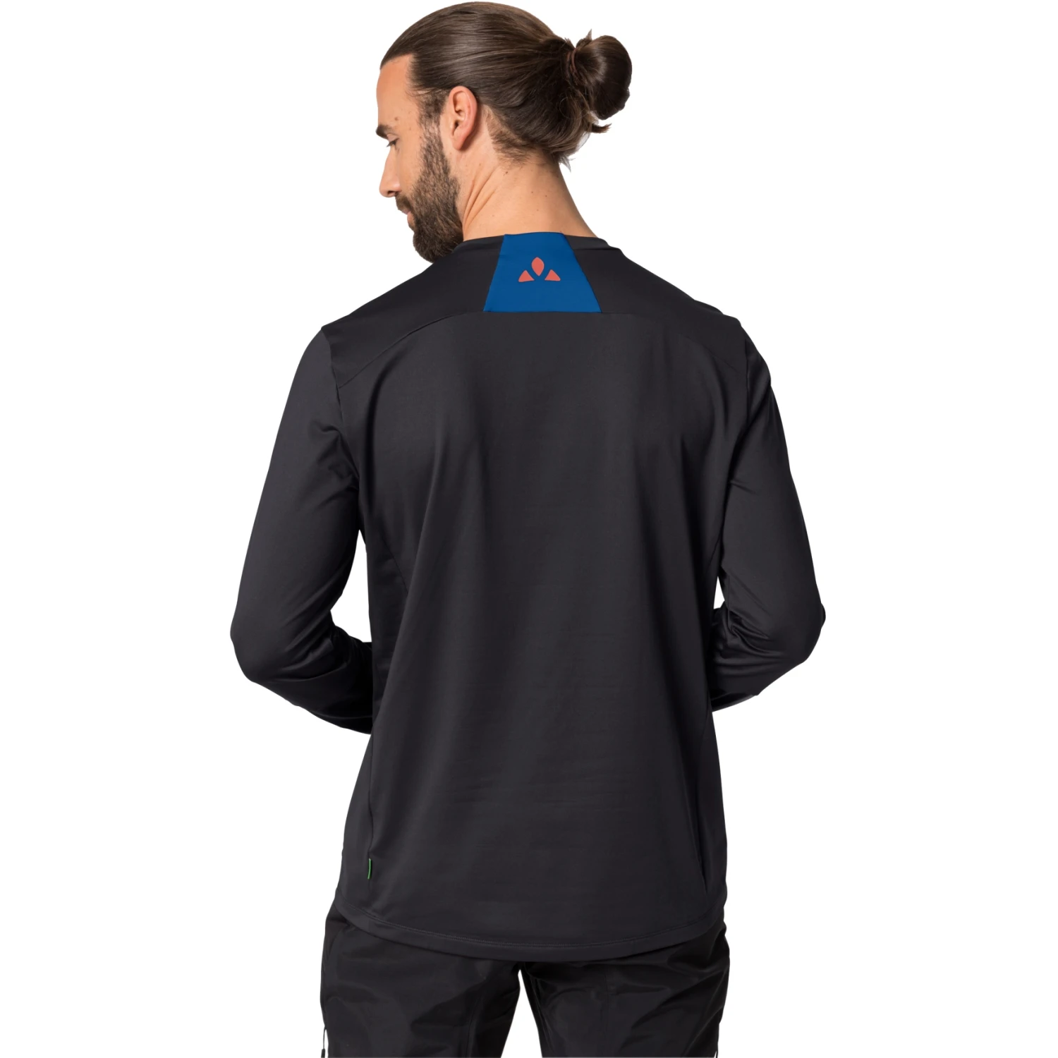 This simple, yet highly functional multisport jersey is a great combination product for mountain bikers who also want to go on tour in winter. The lightweight round neck jersey made of recycled polyester offers full freedom of movement thanks to high stretch content. Back and sleeves are cut longer to protect against cooling. The shoulder seams have been moved down to the back to prevent friction when riding with a backpack.