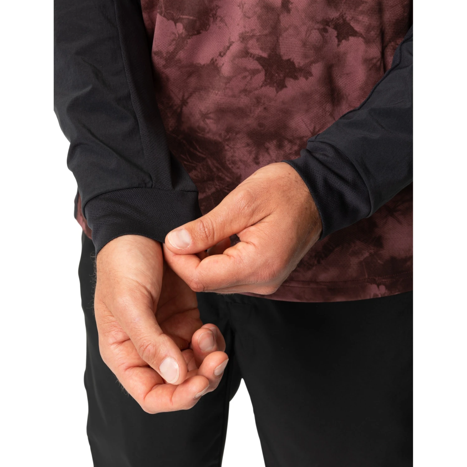 The long sleeve shirt features an all-over print and comfortably soft crew neck. For the very light, breathable polyamide material of the men’s long sleeve shirt, a certified mass balance process is used. In this process, pyrolysis oil is extracted from used tires and fed into conventional polyamide production. The chemical recycling saves up to 60% CO2. The Moab LS Pro Shirt feels most comfortable in combination with the Moab Pro Pants.
