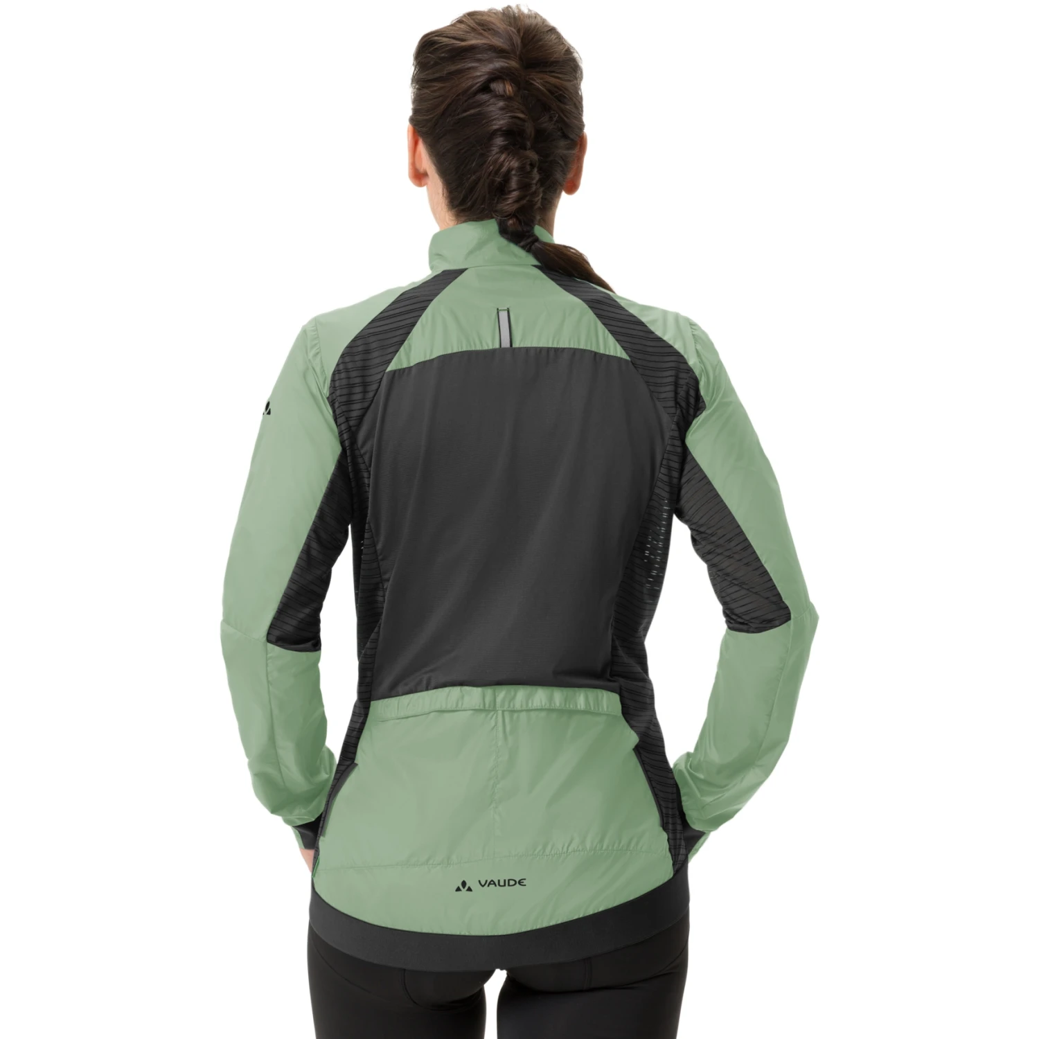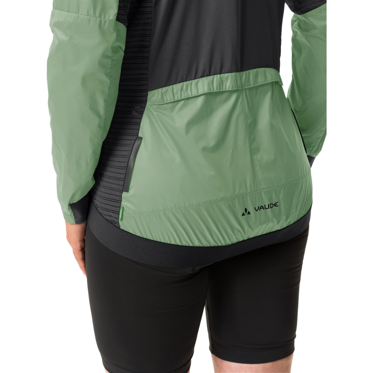 In the side area, an elastic mesh provides good ventilation and in the back, a stretch insert made of recycled polyester still increases the high breathability and comfort in a very sporty riding position. The women’s wind jacket for road cycling can be combined very well with the VAUDE Kuro Tights and the Furka FZ jersey. The VAUDE Green Shape label stands for an environmentally friendly, functional product made from sustainable and bluesign® certified materials.